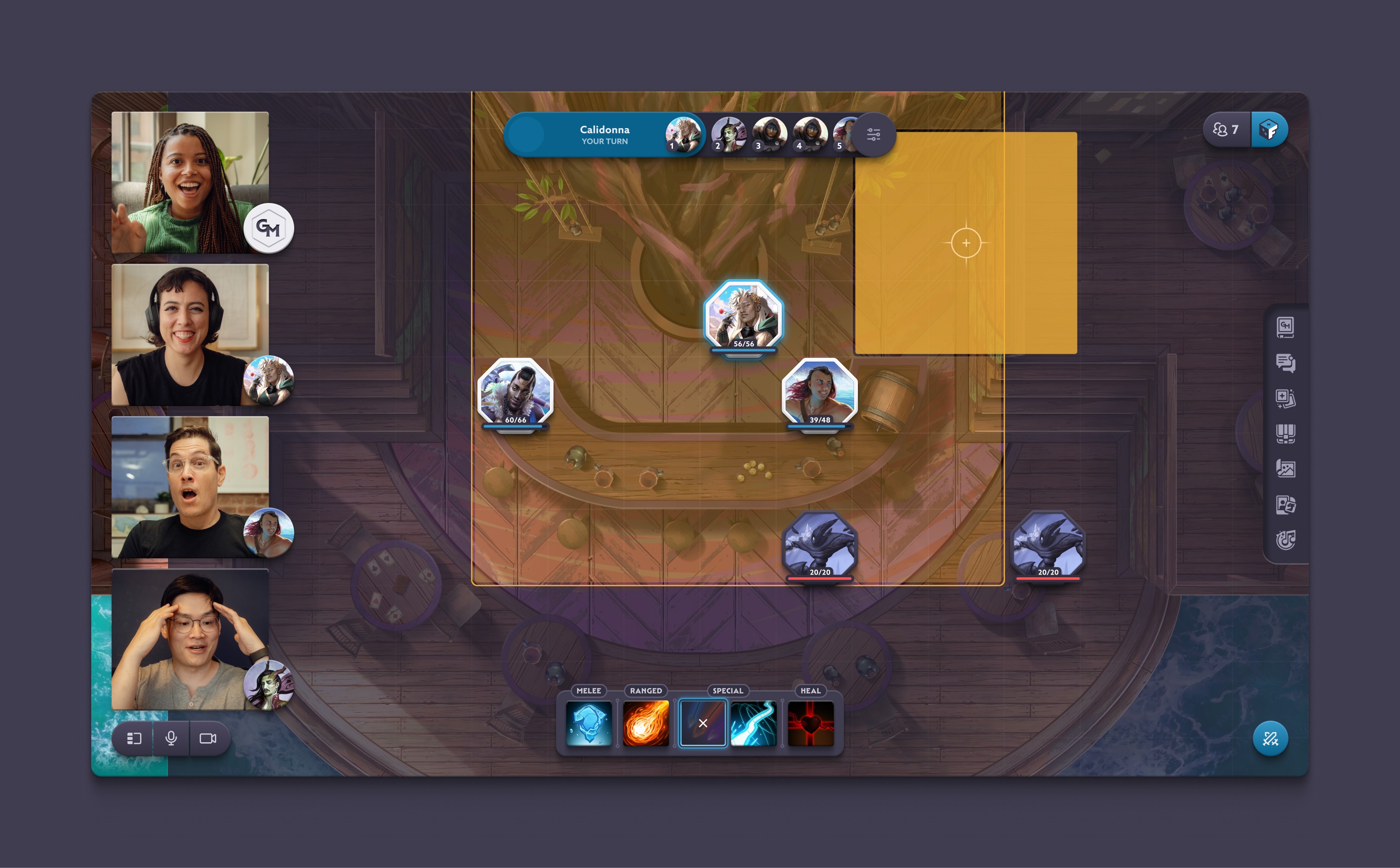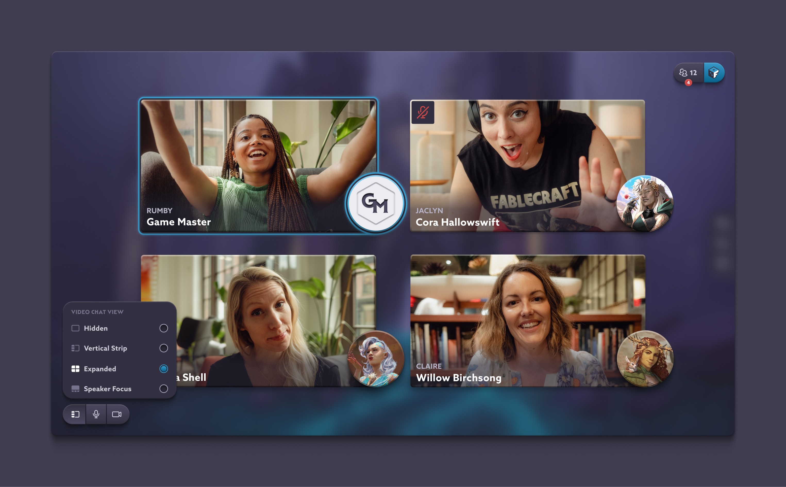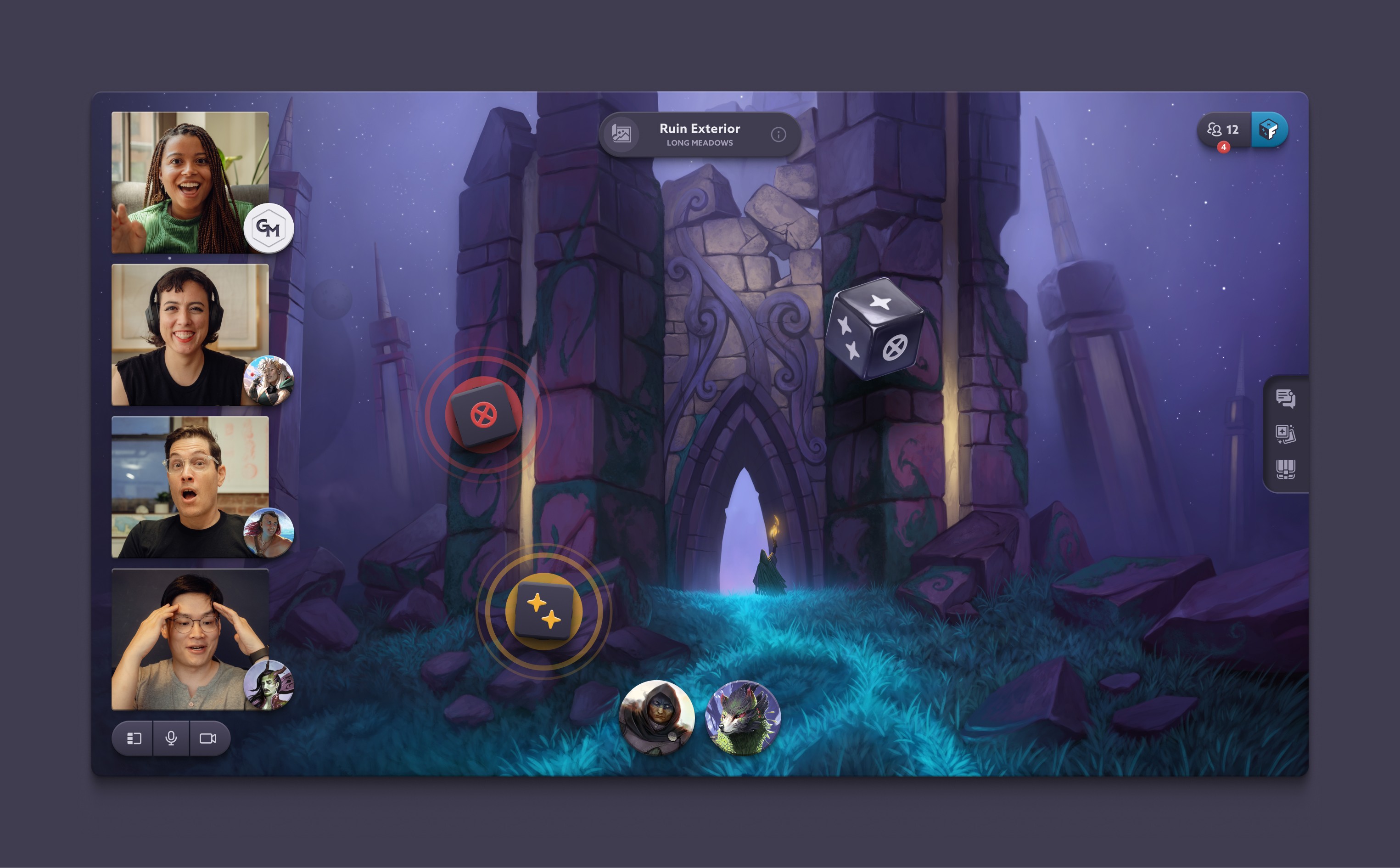 Fablecraft is social & flexible. Play in-person, remote, or both. Use the integrated voice & video chat tools to amplify your adventure, or tuck it aside & explore together with text chat, cursor pings & reaction emotes.
