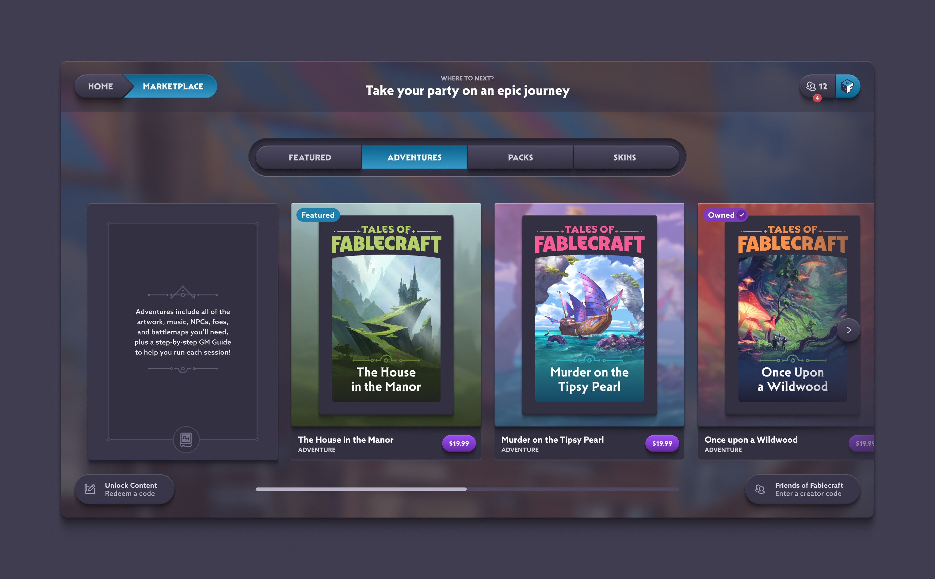 Tales of Fablecraft is a collaborative fantasy role playing game. An all-in-one, digital-first “tabletop” RPG, built to play with friends remotely, or in-person.